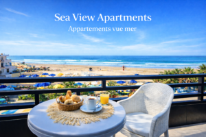 On the beachfront promenade, you’ll find playgrounds, a skatepark, sports facilities, and open spaces for walking and relaxing. Within walking distance, you can visit a dolphin park. About 20 minutes by car, you can explore Crocoparc Agadir, a beautiful park worth visiting for both adults and children. Every Wednesday, the local Anza souk is held nearby, where visitors can discover spices, fresh vegetables, and traditional Moroccan products.